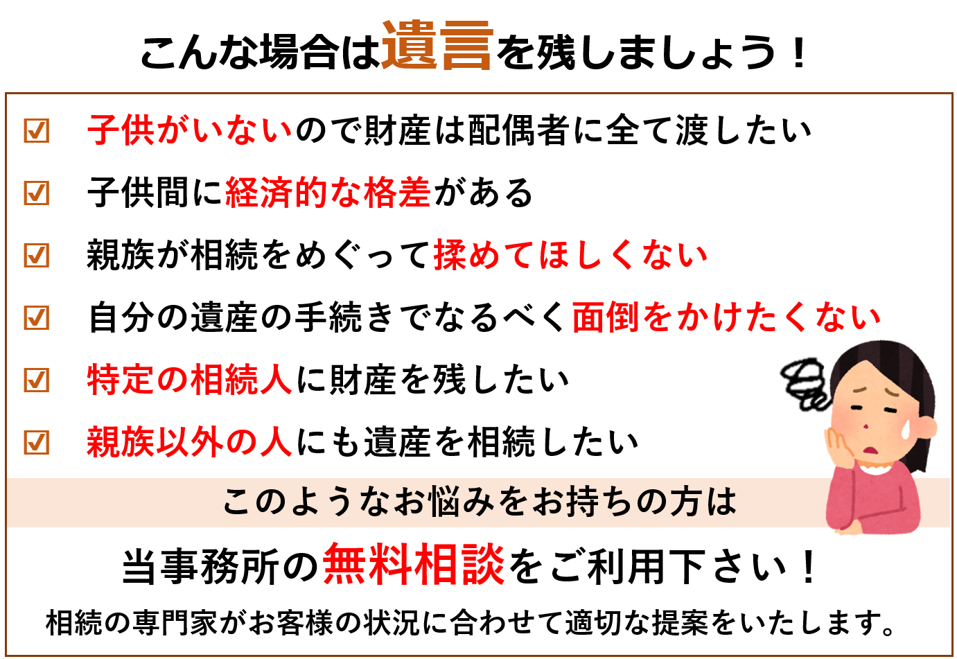 相続のお悩みを無料相談でお聞かせください