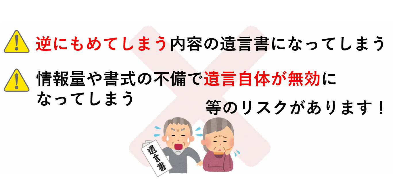 ご自身で遺言を作成する方も多くいらっしゃいますが、適切に作成が出来ていないケースが多いことも見受けられます。