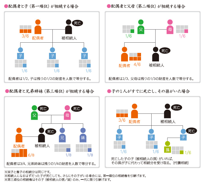 (1)第一順位:被相続人の子供。子供が亡くなっている場合には、孫等の直系卑属。