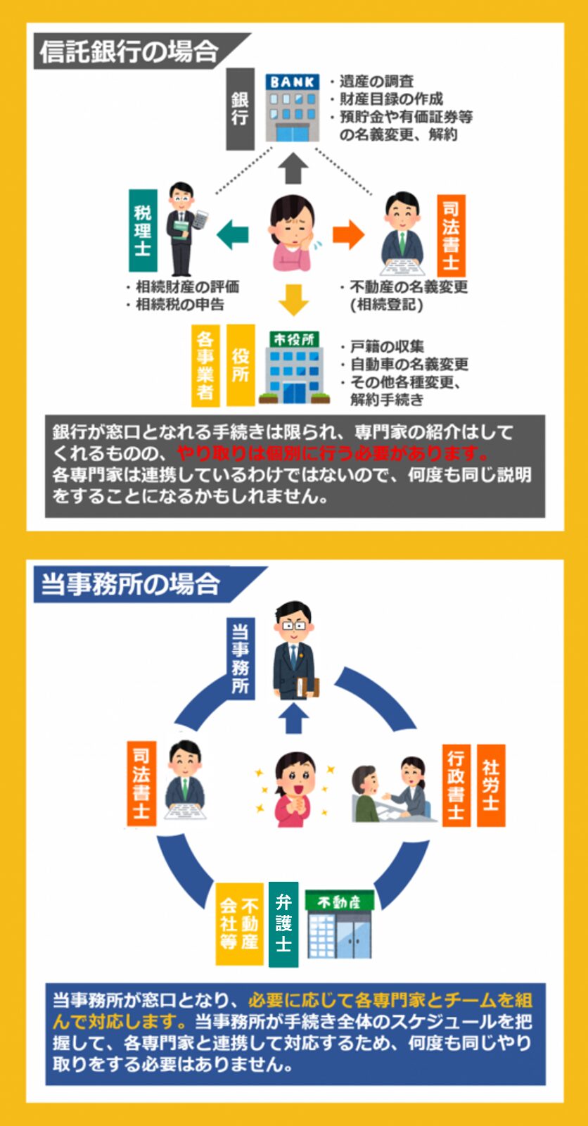 金融機関・信託銀行へ手続きを依頼する場合との比較