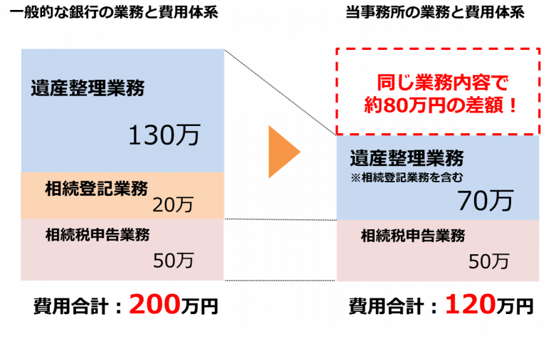 金融機関と当事務所の手続き費用の比較