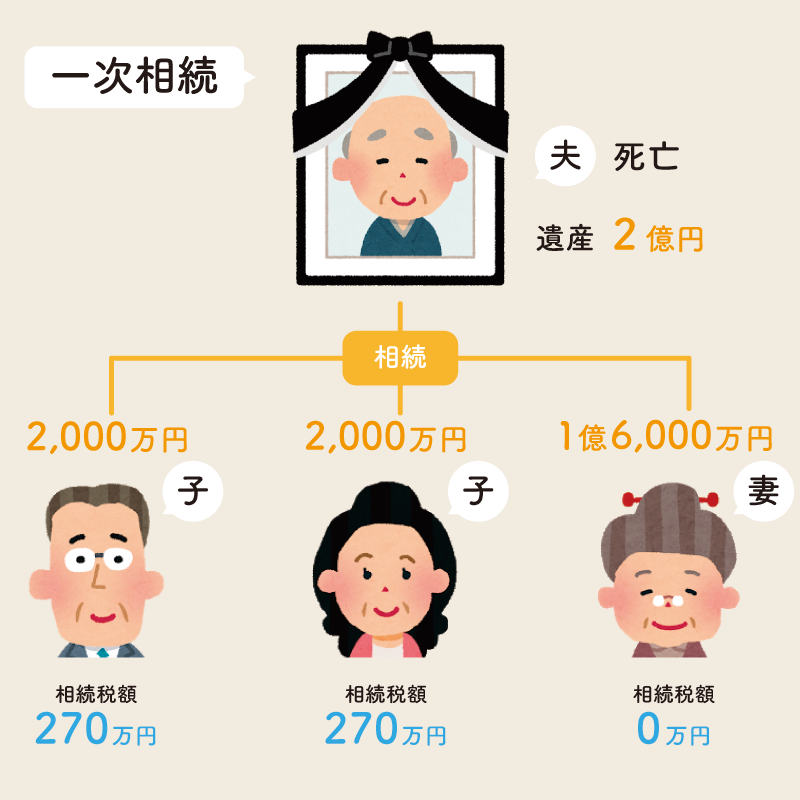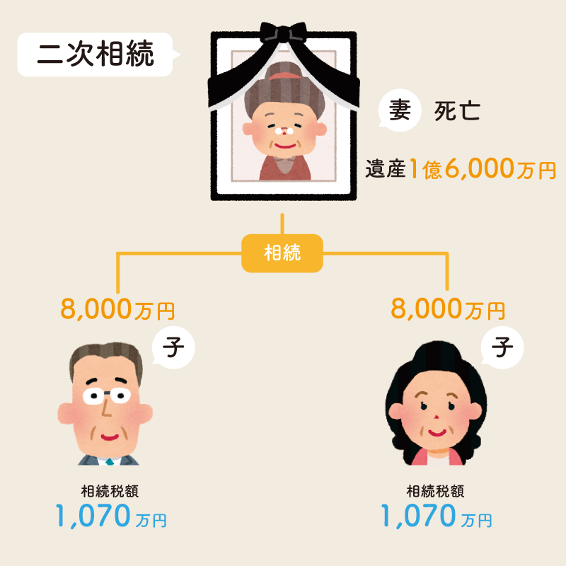 最初の相続を「一次相続」というのに対し、次の相続を「二次相続」といいますが、二次相続では次の理由により相続税が高くなります。