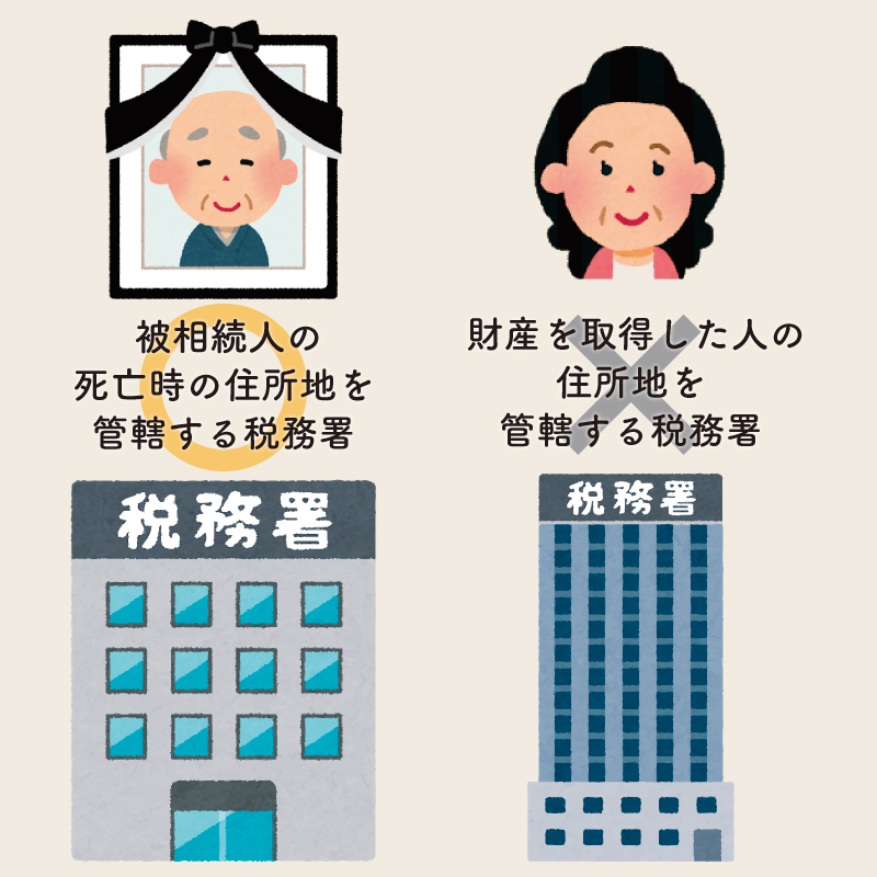 財産を取得した相続人の住所地を管轄する税務署と間違えやすいので注意しましょう。